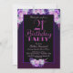 Un noir avec violet et rose floral invitation de fête de 21e anniversaire.