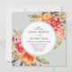 Le design élégant et rustique présente une couronne de belles fleurs acryliques peintes en rose vif, orange et jaune, avec des ppops de feuilles et feuillage violet et vert colorés. Carte inversée dans un gris foncé entièrement personnalisable. Cette invitation est parfaite pour un mariage rustique élégant, une fête d'été ou de printemps