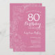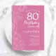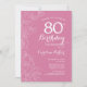 Invitation à la fête d'anniversaire de 80th Floral rose. Design moderne minimaliste avec accents de dessin botanique et police de script de typographie. Carte invitation simple et tendance, parfaite pour une célébration anniversaire élégante. Peut être customisé à n'importe quel âge. Invitations Zazzle imprimées ou téléchargement instantané modèle imprimable numérique.