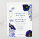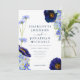 Beau boho rustique peint à la main aquarelle fleurs sauvages d'été en bleu marine, bleu cornflower, violet, vert et jaune faire-part de mariage avec site web rsvp mariage en ligne et code QR sur le dos. Fleurs y compris cosmos, fleurs de maïs, pavots et ne m'oubliez pas avec le feuillage. Facile à utiliser modèle avec script de typographie moderne et élégant. Parfait pour un mariage d'été ou de printemps fleuri à thème bleu marine. Oeuvre originale unique de l'artiste Catherine Sweetman