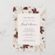 Ce beige fleur sauvage bordeaux que nous vous invitons encore à renouveler est parfait pour votre classique rouille boho rustique, blanc, vow marsala renouveau. Le design présente une couronne bohème ou un bouquet de fleurs sauvages d'aquarelle moderne violet, rouge, gris et rose vif, ainsi que des oranges brûlées et de la verdure dorée. Dans la conception sont présentés des pavots et de l'orge. Le design est idéal pour un mariage de jardin de printemps d'automne ou d'automne simple et minimal. Veuillez trouver d'autres articles de papeterie mariage correspondants ou coordonnés dans le reste de cette collection.