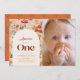 Cette mignonne invitation photo pour le 1er/premier anniversaire de cette fille présente un arrière - plan beige/bronzé avec des champignons, des fleurs sauvages et des feuilles automne/automne. Au verso, un arrière - plan orange aux motifs floraux. Personnalisez-vous pour répondre à vos besoins. Vous pouvez trouver d'autres produits correspondants dans mon magasin.