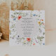 Faire-part de mariage avec un cadre aquarelle de fleurs sauvages et de verdure. Customisez avec vos informations.