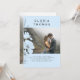 Cette élégante invitation photo de mariage, dans un bleu doux et poussiéreux, reflète parfaitement votre histoire d'amour unique et votre esprit personnel. Son design est à la fois moderne et minimaliste, agrémenté du charme intemporel des fleurs sauvages élégamment placé dans le coin gauche au-dessus de votre photo sélectionnée. La collection de fleurs, soigneusement dessinée à la main, présente une variété de fleurs comme des pavots, des marguerites, des freesias, des papillons et des veronicas, ajoutant une touche de beauté à la nature. Pour ceux qui cherchent à mettre en valeur leur goût sophistiqué et leur caractère distinctif tout en capturant l'essence de la romance et de la grâce, cette invitation bleue aérée est un choix exquis pour impressionner vos invités.