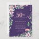 Faites honneur à une femme spéciale avec cette invitation élégante et féminine à la fête du 50e anniversaire. La 50ème est écrite en gros texte pourpre poussiéreux. La célébration d'anniversaire suit. Le nom de l'invité honoré est également en lettres majuscules bleues. Les détails de la fête d'anniversaire sont entourés de fleurs sauvages de prairie de campagne violet et rose. Les éléments floraux sont nichés dans des feuilles verts et des feuillages. Bien qu'il s'agisse d'un design traditionnel, le feuillage botanique ouvert et aéré et le texte lui donnent une ambiance contemporaine. Cette invitation fait partie de la collection Dusty Pink Purple Fleur sauvage 50th Birthday.