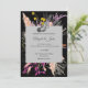 Alliant élégamment des éléments contrastés, cette superbe faire-part de mariage présente un design floral multicolore et vibrant qui fleurit contre un arrière - plan noir profond. Entourée d'une bordure géométrique intemporelle, la police design de la carte ajoute une touche de sophistication moderne, promettant une célébration mémorable de l'amour et de la joie.