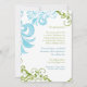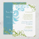 GAMME DE COULEURS : bleu aqua, bleu ciel moyen, vert menthe, vert émeraude. COLLECTION DE DESIGN : Annonce "Save the Date" assortie, Cartes d'annonce de fiançailles. Cette collection de faire-part de mariage est créée à partir d'illustrations originales à l'aquarelle d'Audrey Jeanne Roberts. Des motifs de feuilles tourbillonnantes contemporains délicats et modernes en bleu et vert dansent autour de l'invitation avec une paire de libellules magnifiquement détaillées. Il y a une police élégante de calligraphie manuscrite Ampersand avec les noms des mariés et la date du mariage au recto. Le verso comporte des volutes peintes à la main qui font ressortir votre texte d'invitation. Il s'agit d'un faire-part de mariage recto-verso.
