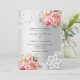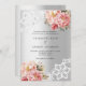 Pour une mariage élégante et romantique. Un arrière - plan à l'aspect faux argent décoré de fleurs d'or rose et rose, de dentelle rose et blanche. Personnalisez et ajoutez vos noms et détails.