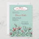Des fleurs dessinées à la main "poussent" de la bordure inférieure contre un arrière - plan turquoise dans cette invitation florale. Un panneau décoratif peut contenir le titre de l'événement, le nom d'honneur, une date et plus.