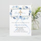 Un fond blanc élégant, orné de fleurs bleues aquarellées, un ruban bleu et une croix dorée. Personnalisez et ajoutez un nom et des détails.