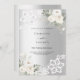 Pour un 25ème anniversaire de mariage élégant et romantique. Un faux arrière - plan argenté décoré de fleurs blanches, de roses et de dentelle blanche. Personnalisez et ajoutez vos noms et détails.