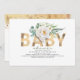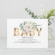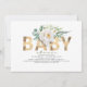Fleurs blanches et verdure feuillage typographie invitation à la douche bébé