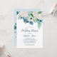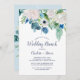 Cette invitation classique à brunch mariage aux fleurs blanches est parfaite pour un événement de printemps. L'élégante décoration florale est composée de roses blanches et d'ivoire, de pivoines et de chrysanthèmes, avec des touches de fleurs d'aquarelle bleu périvent et de feuillage vert.