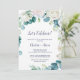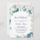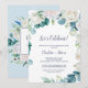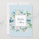 Cette invitation fleurs blanches classiques fêtons est parfaite pour une fête de fiançailles printanière, une soirée bachelorette, ou tout événement ou fête. Le design floral élégant présente des roses, des pivoines et des chrysanthèmes ivoire et blancs doux avec des touches de fleurs et de feuillage vert aquarelle bleu pervenche.