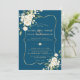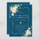 Invitation Fleurs blanches délicates Mariage Bleu Cadre Or