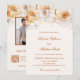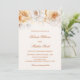 Cette faire-part de mariage dégage une élégance intemporelle avec son design doux et romantique. Le dessus est orné de fines fleurs d'aquarelle à l'IA crées dans les tons chauds d'ivoire, d'or et de blanc, créant un cadre doux et gracieux. La disposition est propre et équilibrée, avec un mélange harmonieux de polices sans serif classiques et un élégant script manuscrit utilisé pour les noms de mariée et mariée, ajoutant une touche personnelle et sophistiquée. L'esthétique générale est raffinée et romantique, parfaite pour une célébration formelle ou sur le thème du jardin.
