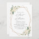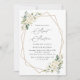 Invitations amis et famille dans le style et donner le ton pour votre journée spéciale avec cette charmante invitation d'anniversaire. Le design présente des fleurs d'aquarelle blanche, de la verdure et un cadre doré sur un arrière - plan blanc.