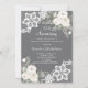 Pour un 25ème anniversaire de mariage élégant et romantique. Un arrière - plan gris décoré de fleurs blanches, de roses et de dentelle blanche. Personnalisez et ajoutez vos noms et détails.