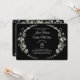 Elégant noir foncé avec fleurs blanches faire-part de mariage pour un look gothique romantique. Les fleurs blanches et l'arrière - plan noir sont parfaits pour une journée de mariage élégante, moderne et sophistiquée.