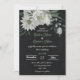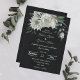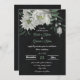 Faire-part de mariage unique avec fleurs blanches romantiques et feuilles verts sur arrière - plan noir. POUR PLUS DE PRODUITS CORRESPONDANTS cliquez sur la collection ci-dessus ou contactez-moi.