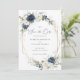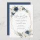 Carte de Mariage Fleurs Bleu Marine Vert Or Enregistrer La Date. Carte élégante de Fleurs Bleues Vertes Mariage Enregistrer la Date