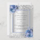 Faux silver looking background decorated with blue roses, flowers and confetti. Personalize and add your names and wedding details. Black letters.