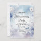 Des flores d'aquarelles douces dans des teintes rêvées de bleu et de lavande font de cette invitation un choix étonnant pour toute occasion spéciale. Que vous planifiez un baby shower, une fête d'anniversaire ou un dîner élégant, ce design ajoute une touche de grâce et de sérénité à votre événement. Les délicats détails floraux et les tons pastel apaisants créent un look intemporel à la fois sophistiqué et accueillant. Entièrement personnalisable pour votre rassemblement unique.