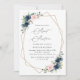 Invitations amis et famille dans le style et donner le ton pour votre journée spéciale avec cette charmante invitation d'anniversaire. Le design présente des fleurs d'aquarelle rose marine et rousse, de la verdure et un cadre doré sur l'arrière - plan blanc.
