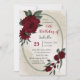 Jolie invitation unique fête d'anniversaire avec des fleurs bordeaux romantiques et des feuilles verts sur un beau cadre géométrique. POUR PLUS DE PRODUITS CORRESPONDANTS cliquez sur la collection ci-dessus ou contactez-moi.