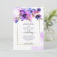 Faire-part de mariage de fleurs d'aquarelle bleu violet avec QR RSVP à l'arrière (pour remplir vos url détails dans le champ et le code sera généré).