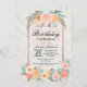 Corail, orange, rose et turquoise aquarelle fleurs et faux or rose contour, invitations de fête d'anniversaire. Ce design classique et sophistiqué est parfait pour un particulier d'anniversaire classe, élégant et branché. Personnalisez avec votre propre message sur le devant et customisez le monogramme sur le dos. Toutes les images