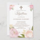 Invitation Fleurs d'aquarelle romantique et baptême croisé