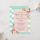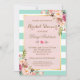 Invitation Fleurs de Baby Shower Rose Menthe Verte Rayures