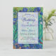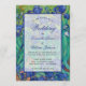 Cette invitation florale a pour fond un tableau d'iris de Van Gogh (maintenant dans le domaine public). Le texte est dans un rectangle blanc transparent. L'occasion "Mariage" et les noms sont écrits dans un script calligraphique bleu élégant, le reste en petites capitales noires.