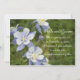 Donnez un ton naturel à votre cérémonie de mariage en plein air ou en bois et à la réception avec le joli mariage des Fleurs de Colombine Bleue Save the Date Faire-part. Cet élégant mariage botanique personnalisé garde la date dispose d'une photo florale peinte numériquement de fleurs bleues du Colorado columbine avec un arrière - plan de la nature vert flou.