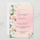 Une invitation estivale en blanc, corail et pêche. Un fond couleur rose gold, rose poudré. Décoré de grandes fleurs aquarelles luxuriantes, fleurs en blanc, corail et pêche. Modèle pour votre nom et les informations de la fête. Le mot Été est écrit avec une police manuscrite de style moderne. Texte en vert, rose gold foncé et noir.