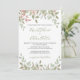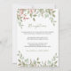 Fleurs printanières Aquarelle Faire-part de mariage rose avec détails de réception. Ce Faire-part de mariage est conçu avec des grappes de Feuilles Aquarelle dans des tons doux de vert et de rose sur un arrière - plan blanc. Le texte comprend : Le prénom de la salle, le prénom de la mariée, la date, l'heure, l'emplacement, l'adresse et la réception à suivre. Le texte inverse comprend : Vos coordonnées et vos coordonnées de réception. Pour personnaliser, insérez simplement les détails de votre événement dans notre modèle, en remplaçant l'exemple de texte. Assurez-vous de consulter la collection complète de Mariages d'aquarelle rose fleur de printemps pour les cartes et accessoires correspondants.