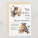 75e anniversaire invitation avec des peintures d'une petite chouette mignonne assise parmi les fleurs dans les branches d'un arbre. Contactez-moi pour obtenir de l'aide sur vos personnalisations ou pour demander des produits Zazzle correspondants ou coordonnés supplémentaires pour votre célébration.