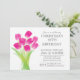 Commencez votre fête d'anniversaire avec notre joli bouquet de tulips invitation avec un bouquet contemporain de fleurs de tulipes roses chaudes sur un arrière - plan blanc. Retournez notre fête d'anniversaire aux fleurs florales pour les adultes pour trouver le dos rose assorti pour une touche spéciale supplémentaire! Disponible dans notre boutique dans une variété de choix de couleur tulipe. Un choix parfait pour un 21ème anniversaire, 30ème anniversaire, 40ème anniversaire, 50ème anniversaire.