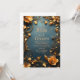 Rendez votre mariage inoubliable avec cette invitation luxueuse dotée d'accents floraux dorés sur un fond sarcelle élégant. Les fleurs dorées ornées et les feuilles tourbillonnantes encadrent le centre, offrant l'espace parfait pour mettre en valeur les détails de votre mariage avec style. Ce design sophistiqué est idéal pour les couples recherchant un mélange d'opulence et de romance pour leur jour spécial. Le texte personnalisable vous permet de l'adapter à votre thème de mariage. Parfait pour les mariages formels, glamour ou à thème vintage.