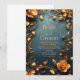 Invitation Fleurs dorées de luxe sur fond sarcelle élégant