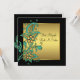 Invitation élégante de fleurs sarcelle bleu et or pour la Bat Mitzvah noire et or.