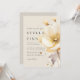Elégante et romantique aquarelle une grande fleur blanc jaune et or sur faire-part de mariage de sable avec code QR pour RSVP et détails mariages.