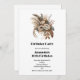 Une invitation à l'anniversaire avec un joli bouquet de fleurs de pêche, entouré de bronze brun et de feuillage aux accents de plume.