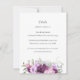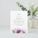 Magnifique carte de détails de bouquet violet pour compléter notre suite de faire-part de mariage de fer à cheval fleuri et rustique. Il est possible de modifier le libellé élégant et traditionnel comme il se doit.
