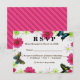 Printemps ou été RSVP et carte menu. Image de texture mosaïque avec papillons et jolies fleurs. Les fleurs sont de couleur rose, jaune et blanche. Bandes diagonales roses au dos de la carte. Personnalisez le texte à vos propres informations. Des produits correspondants sont disponibles ou transfèrent cette conception pour d'autres produits.
