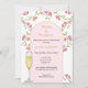 Élégante invitation de fête de mariage rose et or Fleurs et Prosecco avec des fleurs de cerisier aquarelles entourant un cadre en arche. Parfait pour les fêtes de mariage de printemps/été.
