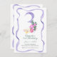 Carte d'invitation d'anniversaire avec l'aquarelle illustration du numéro trois avec des fleurs sauvages et un ruban violet.