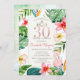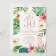 Feuilles tropicaux de palmiers, fleurs et flamants roses. Cette invitation est facilement customisée pour votre événement en ajoutant simplement vos détails.
