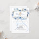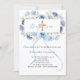 Un fond blanc élégant, orné de fleurs bleues aquarellées, d'un ruban bleu et d'une croix dorée. Personnalisez et ajoutez un nom et des détails.